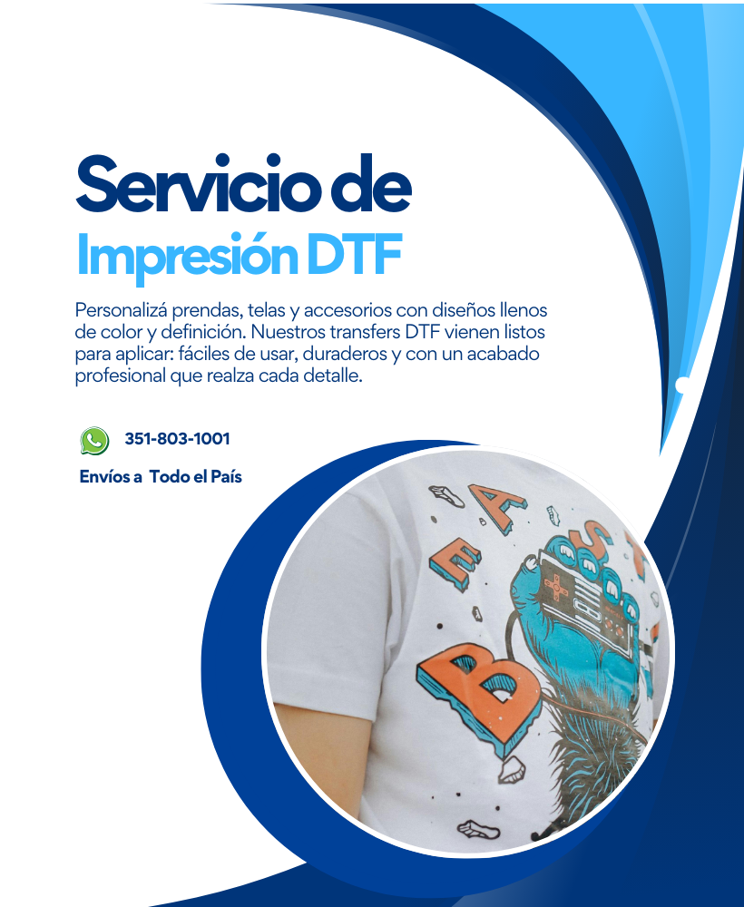 Transformá tus diseños en impresiones DTF de calidad profesional, ideales para aplicar sobre prendas y textiles con excelente definición, colores intensos y gran durabilidad.
